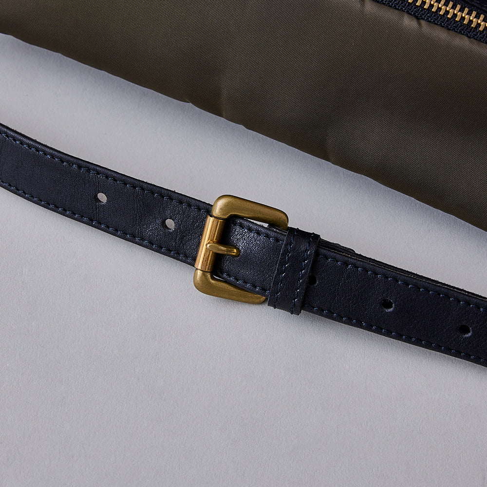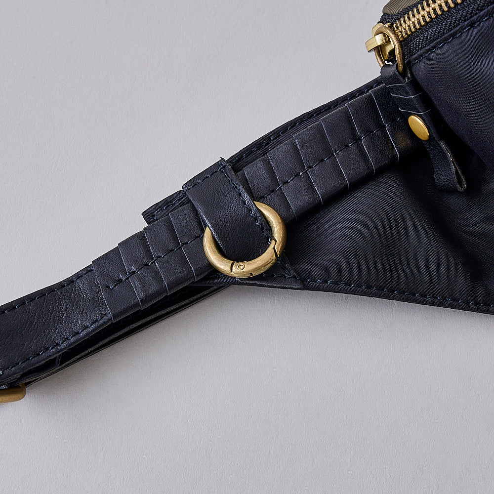 The belt part is made of leather, tightening the casual atmosphere and adding a sense of luxury. It can also be used wrapped around the waist.